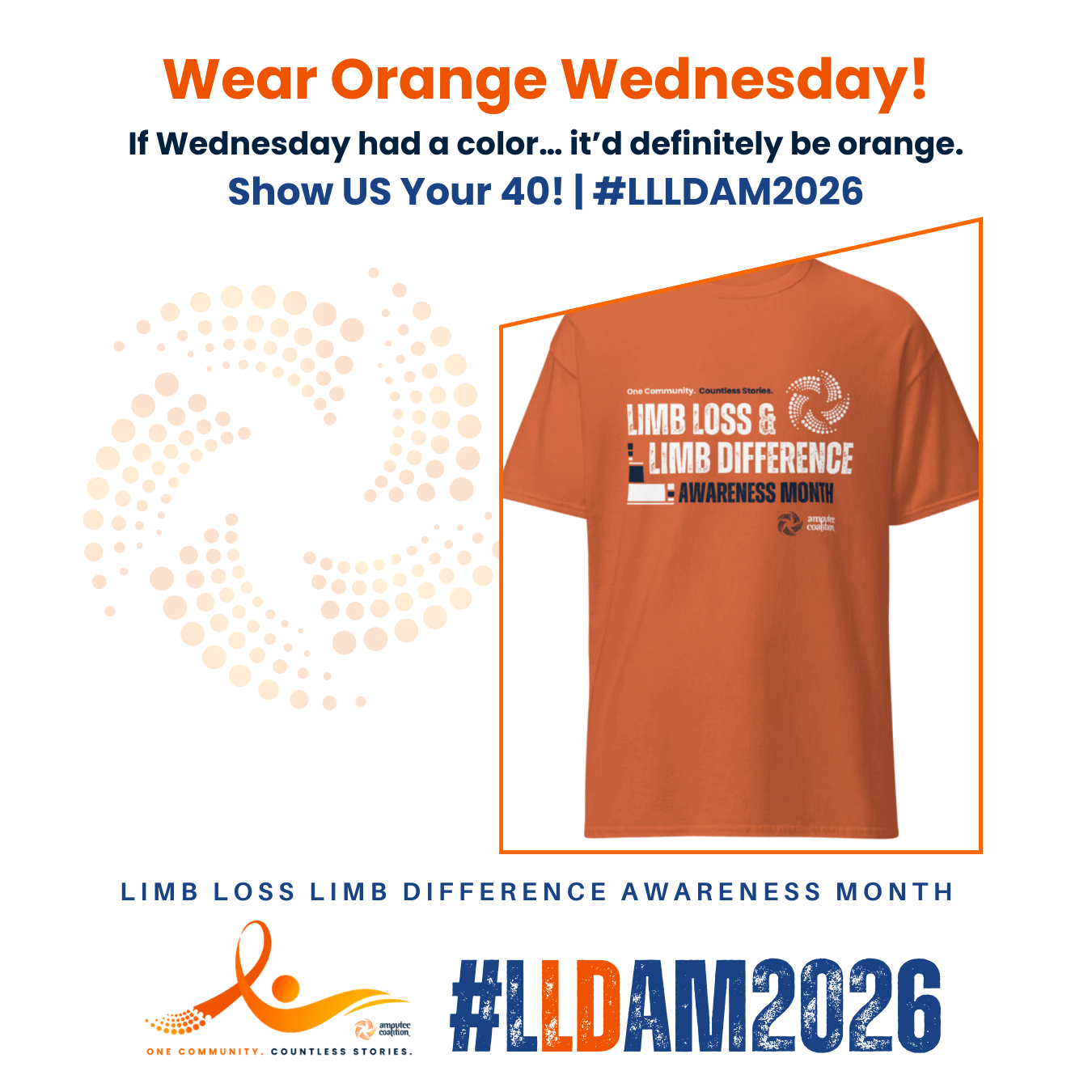 It’s Wear Orange Wednesday and the official launch of #LLLDAM2026! Wear orange, snap a photo, and tag @amputeecoalition